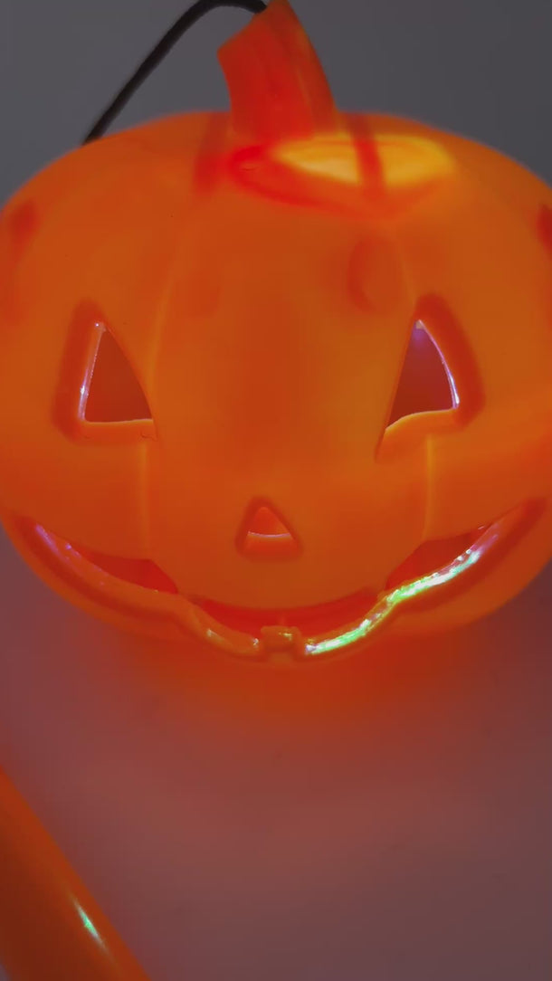 ¡Ilumina tus fiestas de Halloween con esta adorable linterna de calabaza con LED! Un palito con cordel permite colgar la calabaza donde quieras, creando un ambiente festivo y espeluznante al mismo tiempo.