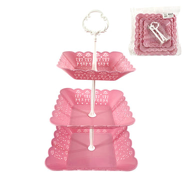 Bandeja Plastica 3 Pisos Cuadrado Rosado
