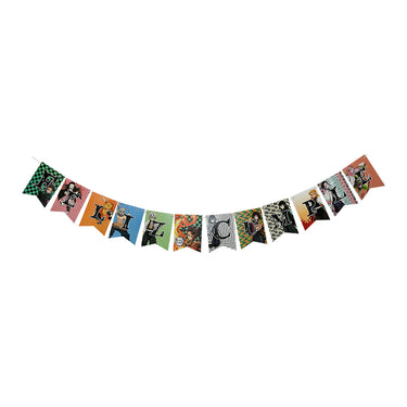 Celebra el cumpleaños de los fans del anime con esta increíble guirnalda decorativa inspirada en el universo de Demon Slayer. Llena tu fiesta de color, acción y personajes inolvidables con un diseño que no pasará desapercibido.