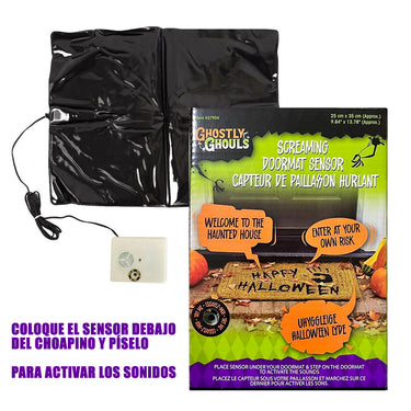 Con nuestra Alfombra de Puerta Halloween con Sonido convertirás la entrada de tu casa en una verdadera casa embrujada. Solo necesitas colocar el sensor debajo de la alfombra y, cuando alguien la pise, ¡se activarán sonidos terroríficos que asustarán a todos! El accesorio perfecto para darle un toque espeluznante y divertido a tu decoración de Halloween.
