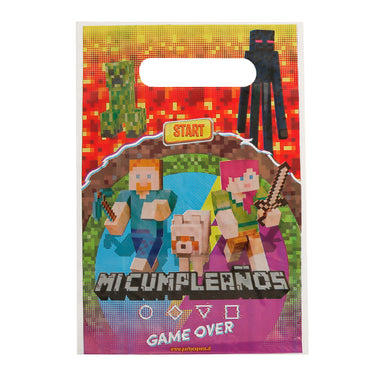 Estas bolsas inspiradas en el universo de Minecraft son ideales para sorprender con dulces o pequeños regalos. Con personajes emblemáticos y colores vibrantes, son el complemento perfecto para una celebración llena de bloques y creatividad.