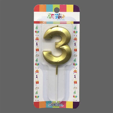 Home Comercio Velas Vela Numeral Stick Metal Dorado N 3