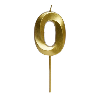 Celebra cumpleaños y fechas especiales con esta elegante vela numeral metálica dorada correspondiente al número 0, ideal para complementar cualquier torta con un estilo moderno y sofisticado.