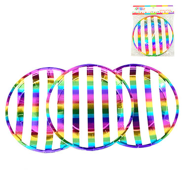 Plato cartón rayas arcoiris de 9 pulgadas (23 cm). Contiene 10 unidades.