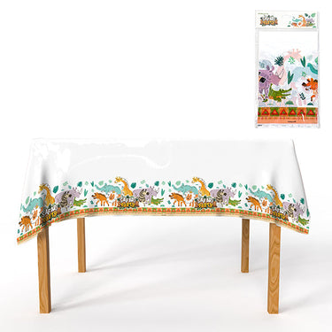 Con ilustraciones de animales de la selva como leones, jirafas, elefantes y más, este mantel crea un ambiente salvaje y alegre que encantará a niños y adultos por igual.