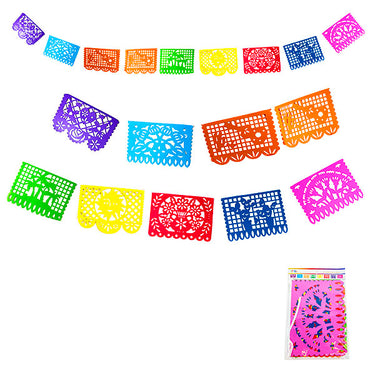 Decora tu fiesta con este banderín inspirado en la clásica estética mexicana. Sus colores brillantes y diseños calados aportan un ambiente festivo ideal para Halloween, Día de los Muertos o celebraciones temáticas mexicanas.