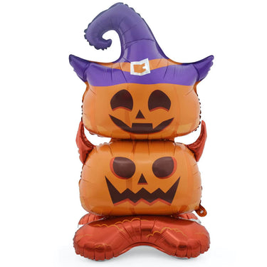 Llena tu fiesta de Halloween con el encanto clásico de esta decoración inflable de doble calabaza. Fabricada en material mylar, como los globos metalizados, es ligera, resistente y se mantiene de pie por sí sola gracias a su práctica base inflable.