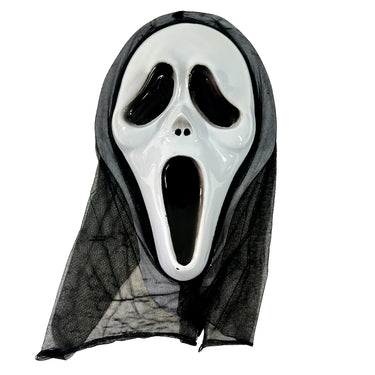 Incluye capucha de tela negra integrada, que cubre completamente la cabeza para lograr un efecto misterioso y aterrador.