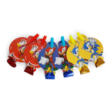 Incluye 6 pitos con diseño de Sonic, Knuckles y Amy Rose, tres personajes icónicos de SEGA. Cada uno con colores vibrantes, papel metalizado y boquillas plásticas para un uso fácil y divertido.